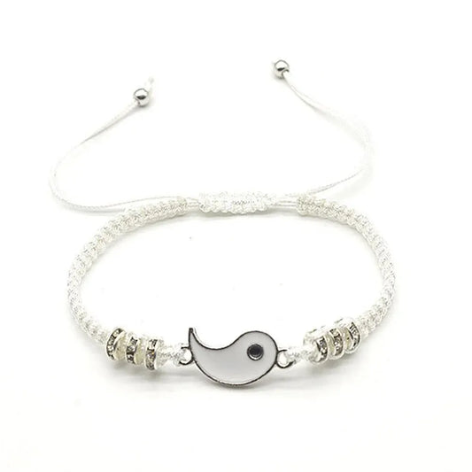 2 PC Jewelry Set Couple Black White Tai Chi Bracelet Rope Adjustable Chain Set