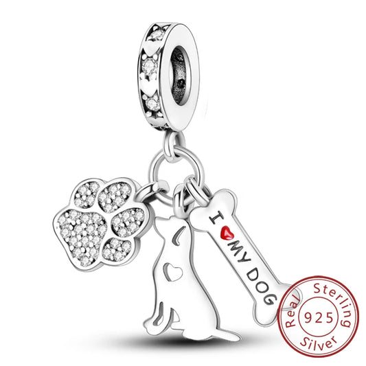 Sterling Silver Charm Beads Dog Cat Pets Pendant Fit Original Bracelet Necklace DIY Charm Jewelry Making