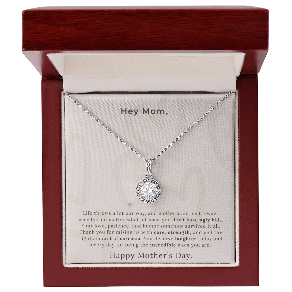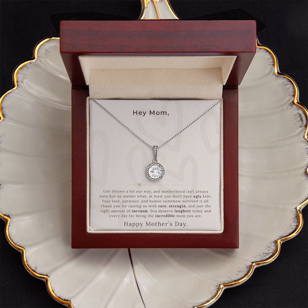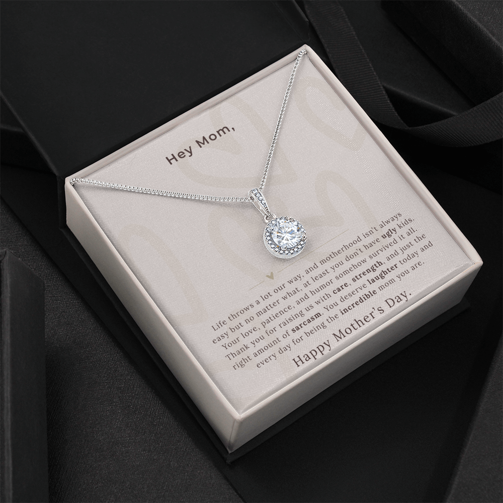 A playful, lighthearted gift for moms who love to laugh and don’t take life too seriously.Surprise your loved one with a timeless and elegant gift. Our dazzling Eternal Hope Necklace features a cushion cut center cubic zirconia that will sparkle with every step. The center crystal is adorned with equally brilliant CZ crystals, ensuring a stunning look every wear. Wow her by gifting her an accessory that will pair with everything in her wardrobe!